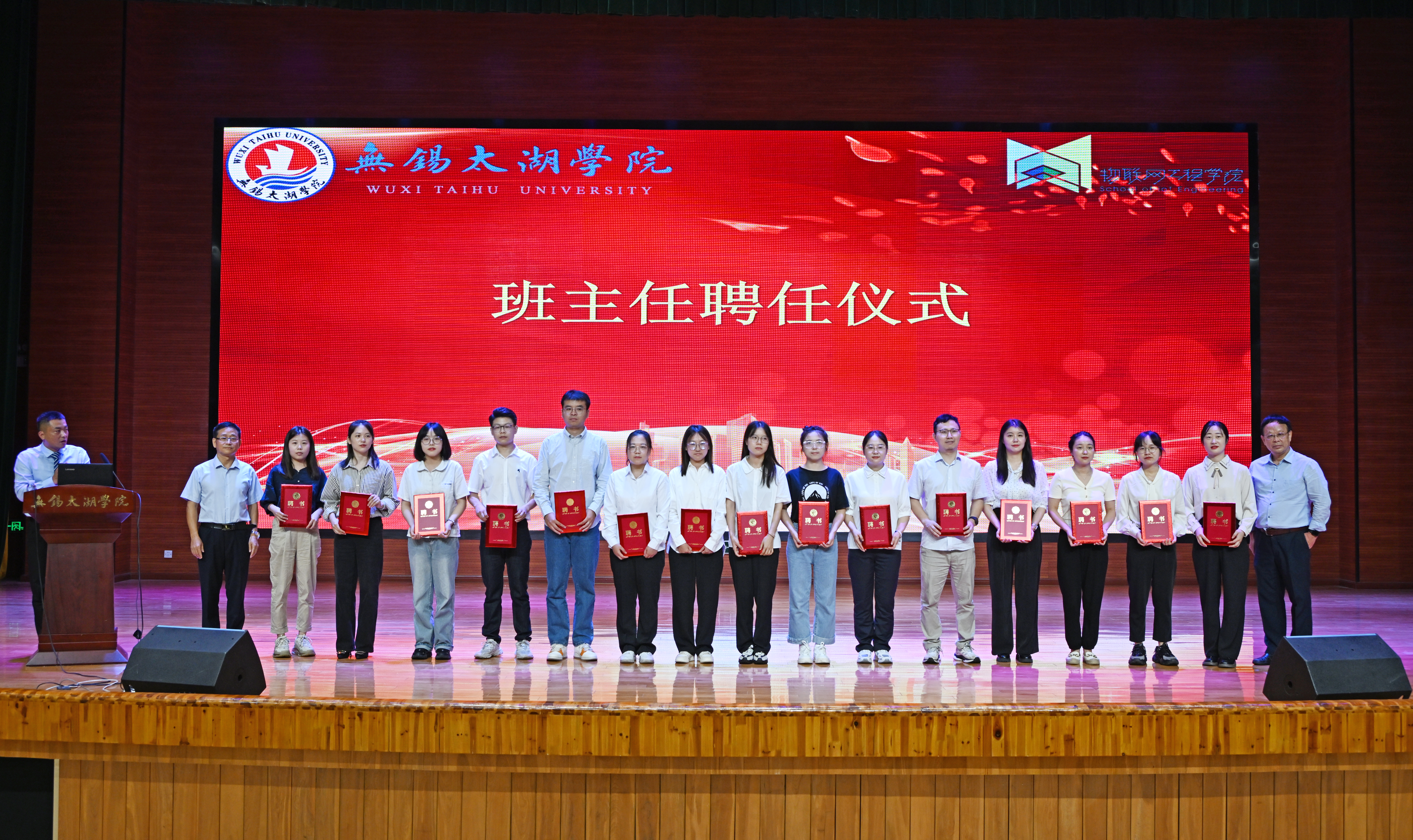 随后进行的是新生班主任聘任仪式,由成院长、方院长为他们颁发聘书。