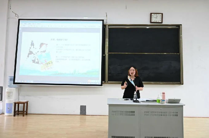 吴处长给同学们讲授的题目是《我的大学梦》,她从“立志、追梦、达志”三个方面与同学们进行了精彩的分享。她表示大学的学习目标非常重要,就像没有方向的船,什么风都不是顺风,需要同学们有明确的发展目标,需要同学们培养独立的能力,专注的力量和钻研的精神。吴处长还给同学们分析了大学每个阶段的重要内容,要求同学们学会管理自己、约束自己、发展自己。结合专业特点,吴处长希望同学们在校期间要加入社团、积极参加竞赛、志愿服务和实践活动,考取专业性技能证书,朝着“本科水平、一专多能”的人才培养目标奋勇前进。报告尾声,吴处长希望同学们加快融入校园生活,要爱班、爱校、爱国,要坚持运动、健康规律,要学到知识、掌握本领,在太湖的四年中遇见更好的自己。
