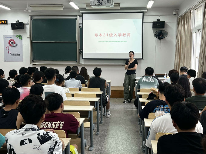 接下来辅导员戎婷竹从爱国爱校教育、适应性教育、文明修养与校纪校规教育、职业生涯规划教育、安全教育、心理健康教育等方面向21级专本新生进行讲解。讲解结束后,戎老师和新生们进行了交流,一方面加深彼此的认识和了解;另一方面也勉励同学们在大学中及时确定目标、主动进行学习、合理分配时间等等。最后戎老师再次表达对同学们的热烈欢迎,并送上对同学们最真挚的祝福。