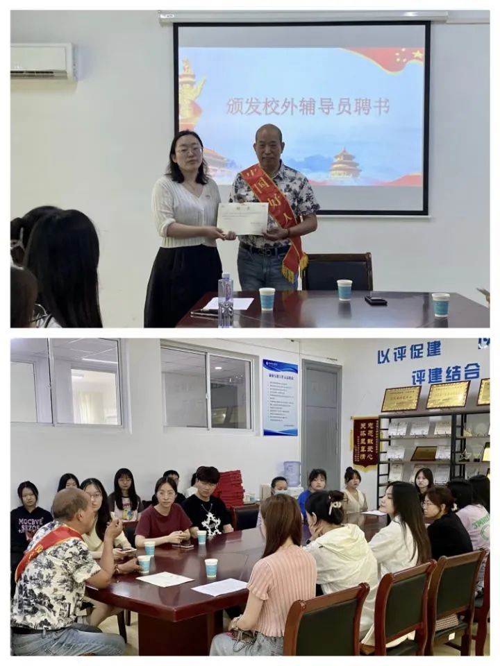 随后,由学生党支部书记王莺为王国富老师颁发校外辅导员聘书。王国富老师是一名中共党员,曾于2017年获评“无锡好人”、“江苏好人”,2018年获评“中国好人”,是一位名副其实的活雷锋。王国富老师幽默风趣,平易近人,会上他为大家讲述了他的各种奉献社会的雷锋故事。其中包括常年为居民们提供志愿服务、常年投身于公益活动中以及拾金不昧等,他表示为人民服务他很开心,同时希望能够将雷锋精神宣扬给更多的人。同学们认真倾听着王老师的讲述并且深有感触,立志自己今后也能积极传递王老师这种雷锋精神的高尚品德。
