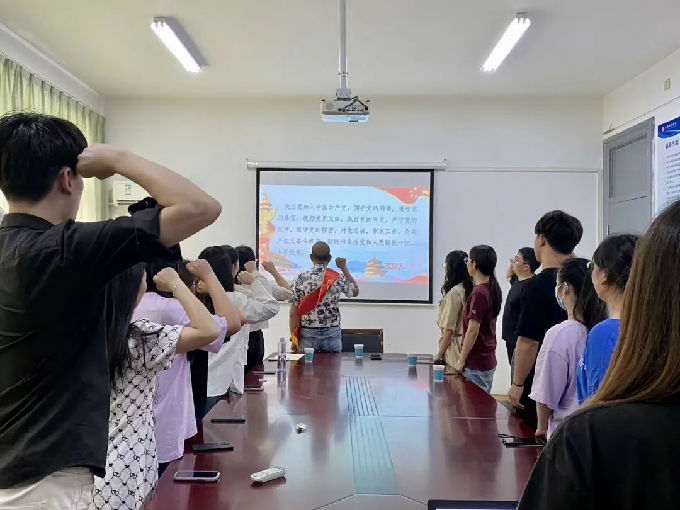 大会伊始,由智能建造学院学生党支部书记王莺老师发言,她对毕业生党员在校这些年所付出的努力表示了肯定,并希望他们即便是在离校后依旧能够严格要求自己,时刻谨记做一名合格的共产党员,发言结束后,全体起立重温入党誓词,以坚定初心。