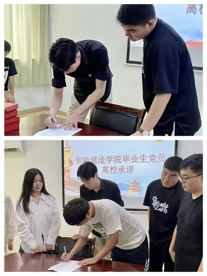 最后,由智能建造学院党员毕业生们宣读离校承诺并在离校承诺书上签字,祝他们为热爱奔赴山海,“愿有前程可奔赴,亦有岁月共回首”,用更高的标准要求自己,作为一名党员应该时刻以身作则,尽最大的努力去实现梦想。至此,智能建造学院毕业学生党员欢送会圆满结束。