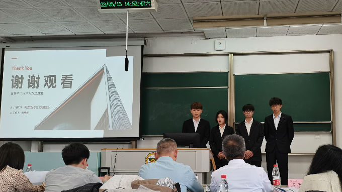 比赛过程中,先参赛队伍的队长对参赛作品进行解说汇报,内容包括团队介绍、云检分析、建模设计、总结感悟。汇报时,我院学生从容自信,在汇报结束后再由整个团队的成员进行同台答辩,面对评委们的提问,选手们沉着冷静,回答井井有条,团队间的良好配合和出色的现场发挥为比赛后期的顺利进行打下了坚实的基础。