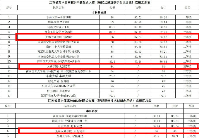 近日,江苏省第六届高校BIM装配式大赛在东南大学落下帷幕。多所来自江苏省各地的高校团队参加了本次赛事,我院共三支队伍前往南京东南大学九龙湖校区参加决赛,在我院参赛学生精心的准备和努力付出下,经过激烈角逐,我院“锡湖城”和“天韵筑梦”等三支团队分别在此次大赛中荣获装配式建筑数字化设计组二等奖、三等奖和智能建造技术创新应用组三等奖的佳绩,获奖成绩位列同类院校第一。