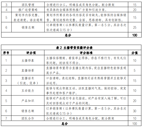 通过该赛项锻炼学生自媒体直播营销策划能力与公众表达能力以及新媒体运营能力,熟悉各直播平台运营规则,细化专业营销渠道,提供新兴自媒体就业与创业锻炼机会。参赛团队基于互联网、物联网及赛事电商(抖音)平台对主办方所指定的产品(花香 5 系列产品)进行运营策划,团队要根据产品特色,在规定时间内制定具体可行的运营方案。根据制定的运营方案,借助网络新媒体方式进行营销转化,注重产品媒介推广、销售,强化综合项目实操能力,深度融合全线运营技巧,在大赛组委会要求的统一时间、统一电商或直播平台进行销售,实现从平台运营到流量变现。竞赛采用团体竞赛方式,每队 3-5 名选手(包含直播运营 1 名,主播 1-2 名,小助手 1-2 名),不超过 2 名指导教师