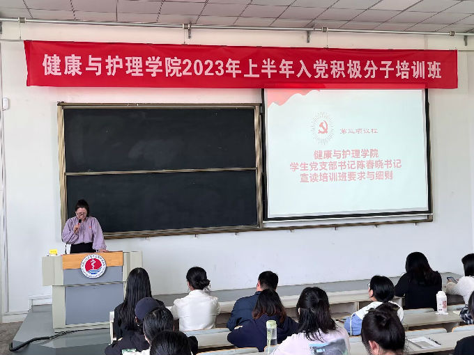 为贯彻落实习近平新时代中国特色社会主义思想,提高入党积极分子的思想觉悟和政治素养,深入党史学习教育,加强党性教育,提高党性修养。2023年5月9日中午12:30,健康与护理学院2023年上半年入党积极分子培训班开班仪式于5号楼318教室顺利举行。