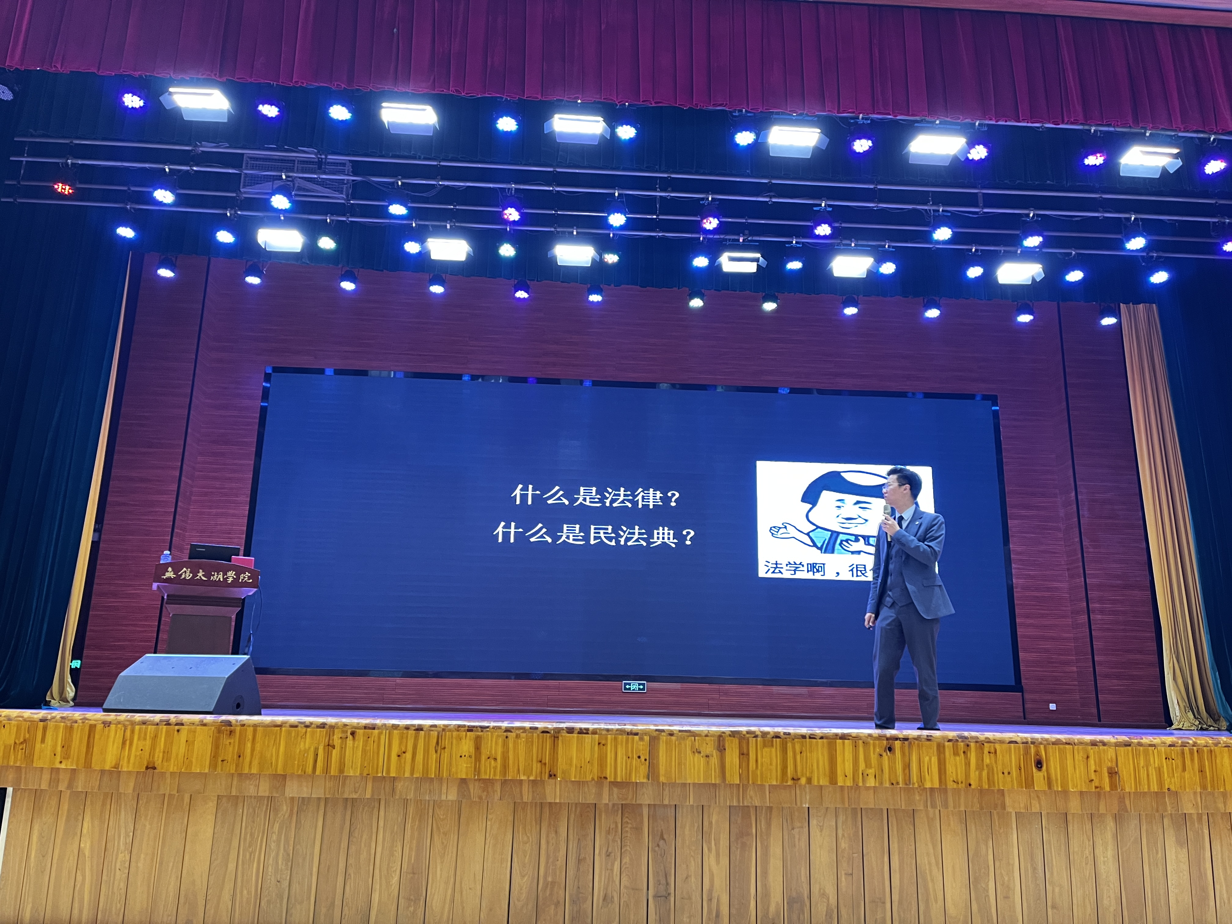 为了培养大学生良好的法治观念和法律素质,提高当代大学生防诈骗意识,智能装备工程学院与智能建造工程学院联合开展的“法治护航,学法讲座”校园普法暨防诈骗专题讲座于5月11日18点30分在工科楼报告厅举行。本次活动由江苏海辉律师事务所的王诏炜律师主讲,智能装备工程、智能建造工程学院全体大一新生参加。