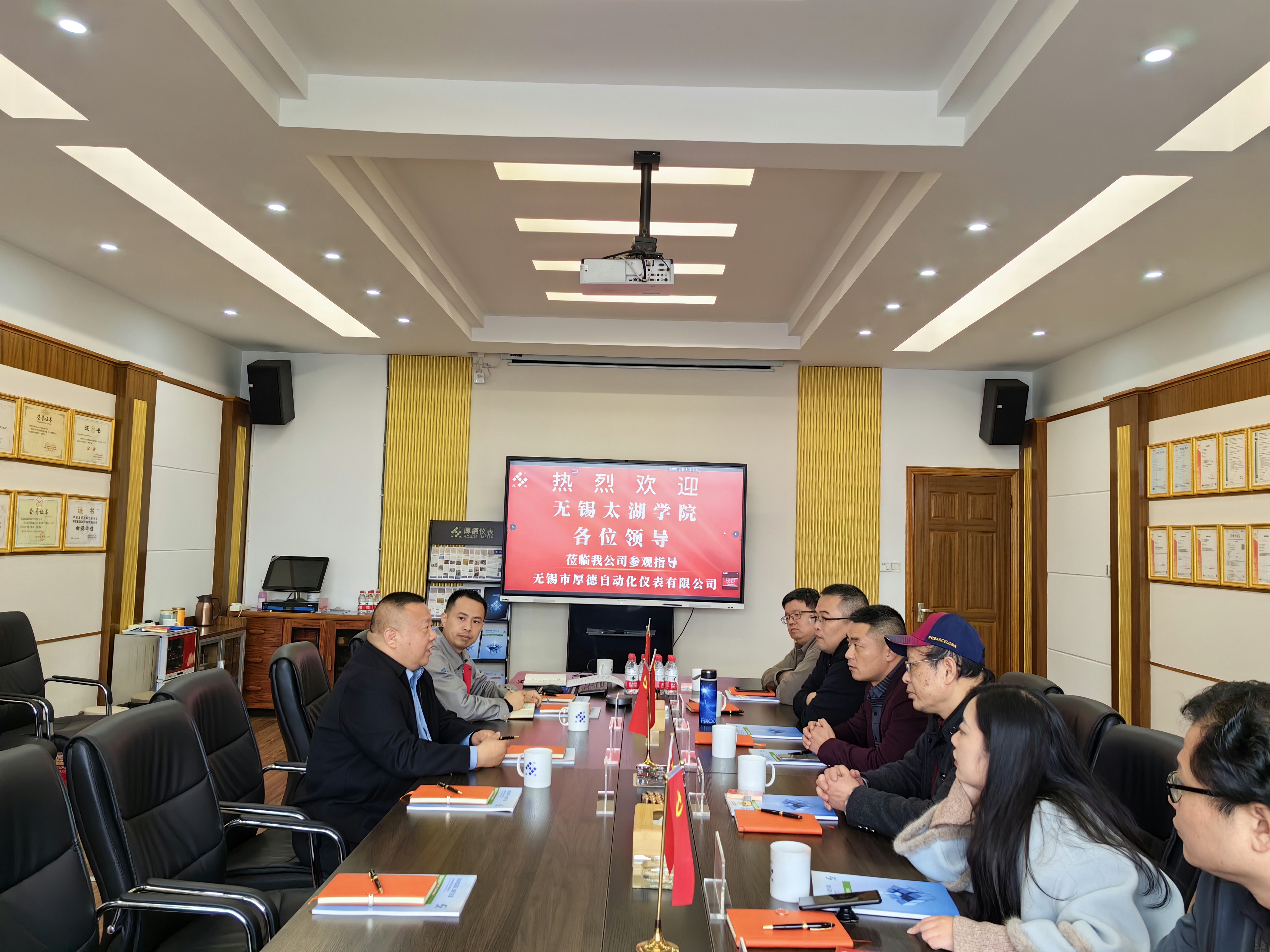 无锡市厚德自动化仪表有限公司的徐志强总经理、缪总工程师分别带领大家参观了公司的生产车间、产品研发和测试实验室、校企合作的共享实验室,并重点介绍了公司目前的主要项目、主要成果及与国内多所院校合作的情况。最后,双方就在无锡市厚德仪表技术研究院开展实习实训、项目合作等事项达成了初步共识。