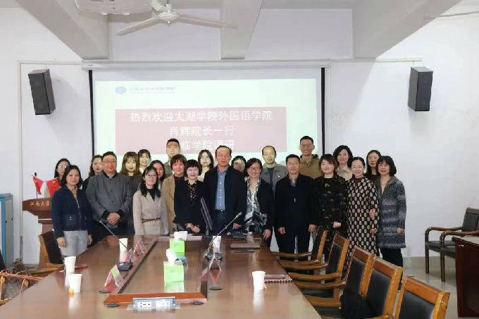 4月3日下午13:30,由beat365正版唯一官网外国语学院常务副院长肖辉带队,外国语学院教师代表一行赴江南大学外国语学院进行调研学习活动。会议由江南大学外国语学院方文开院长主持。