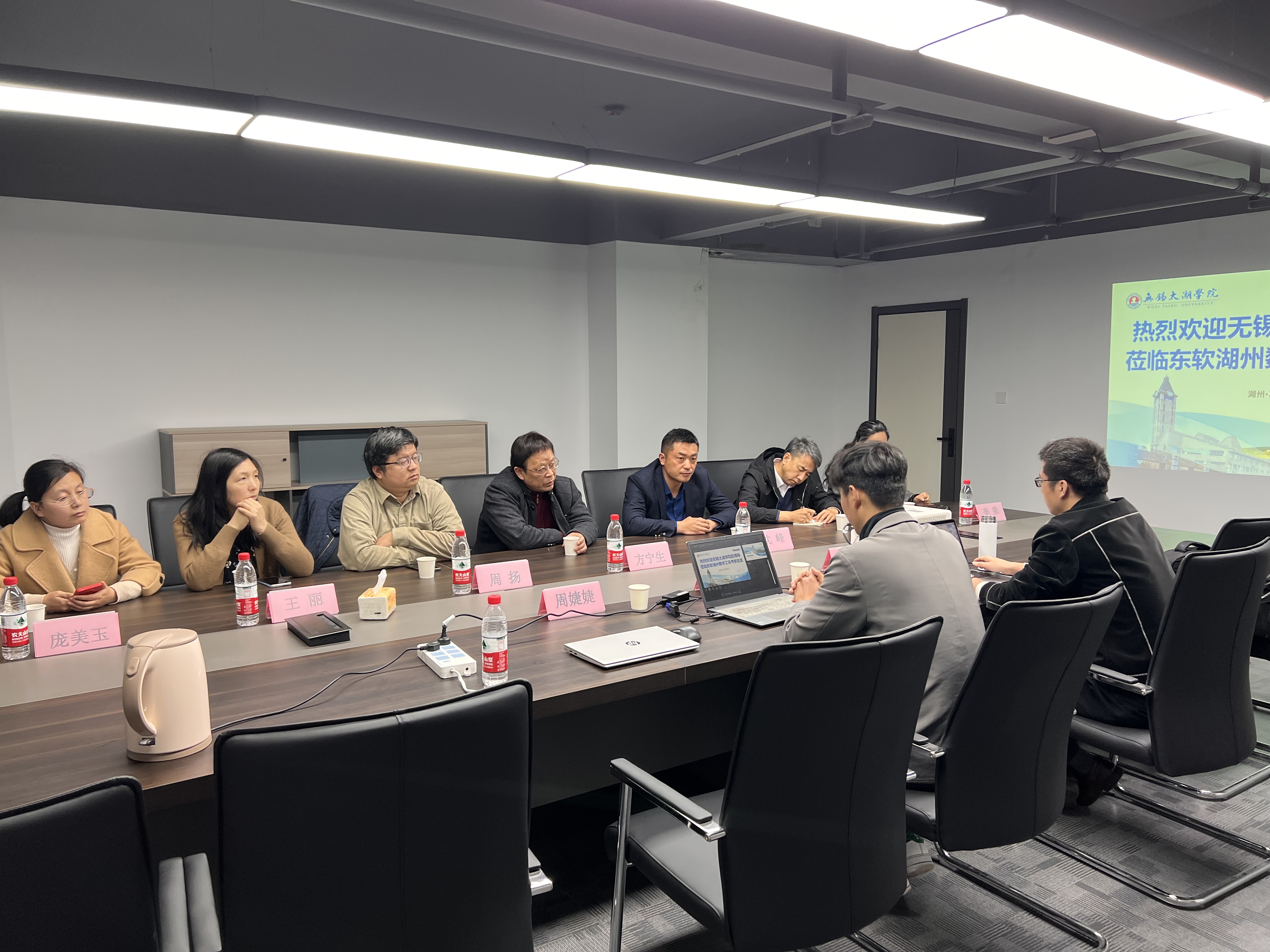 东软教育交付中心实施主管刘元朋对实训计划及安排及学生实习就业情况、合作企业情况进行了详细的介绍,双方就学生实训计划及安排进行了面对面交流及协调,充分考虑学生实习、考研和毕设及就业各个环节。科研副院长方宁生就学生毕设选题与东软进行了深入的探讨,努力将学生实训、毕设及就业三个环节有机结合,充分发挥企业导师实战经验丰富的长处。东软湖州数字工场对学生实习期间从学习到生活及就业都进行了系统的规划和安排,东软在全国有2500余家合作企业,其中一线城市1800家,二线城市700余家,这为学生实习任务完成后的就业提供了有力的保障。东软完备的规章制度,尤其严格的请假管理制度,每天的查寝制度,确保了学生的安全,这些都得到了我院党总支副书记沈峰的充分肯定。