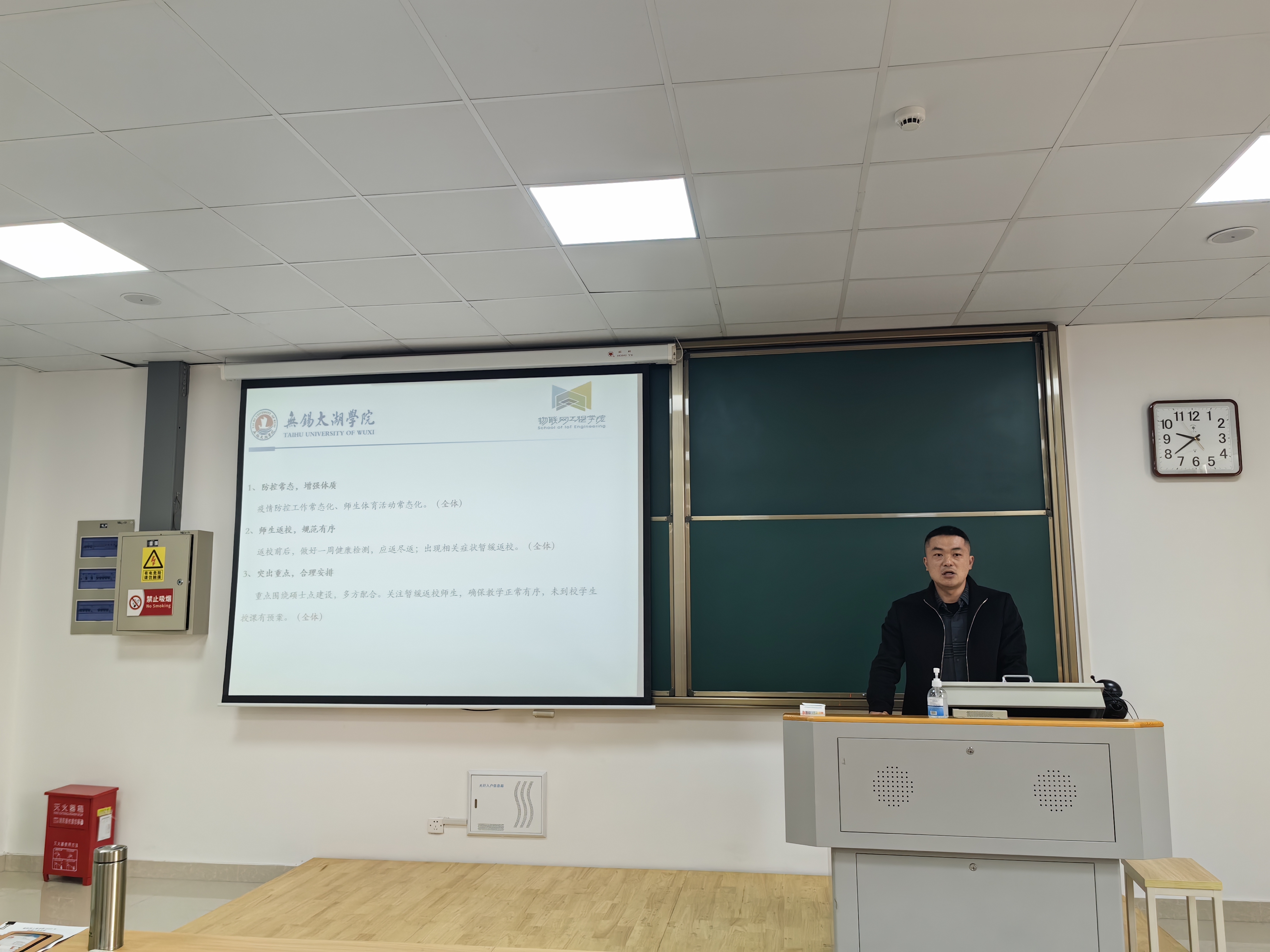 为统筹推进学院学生工作提质增效,筑牢校园安全防线,精准部署就业服务与日常管理重点任务,近日,物联网工程学院学工队伍召开专题学工例会。学院党总支副书记沈峰主讲并作全面工作部署,荣巷派出所驻校民警周警官受邀参会,为学院全体辅导员开展反诈宣传与安全答疑。全体学工人员、辅导员参加会议。会上,沈书记围绕学生思想引领、安全稳定、反诈教育、就业推进、日常管理等重点工作进行系统安排。他强调,全体学工人员要提高政治站位,...