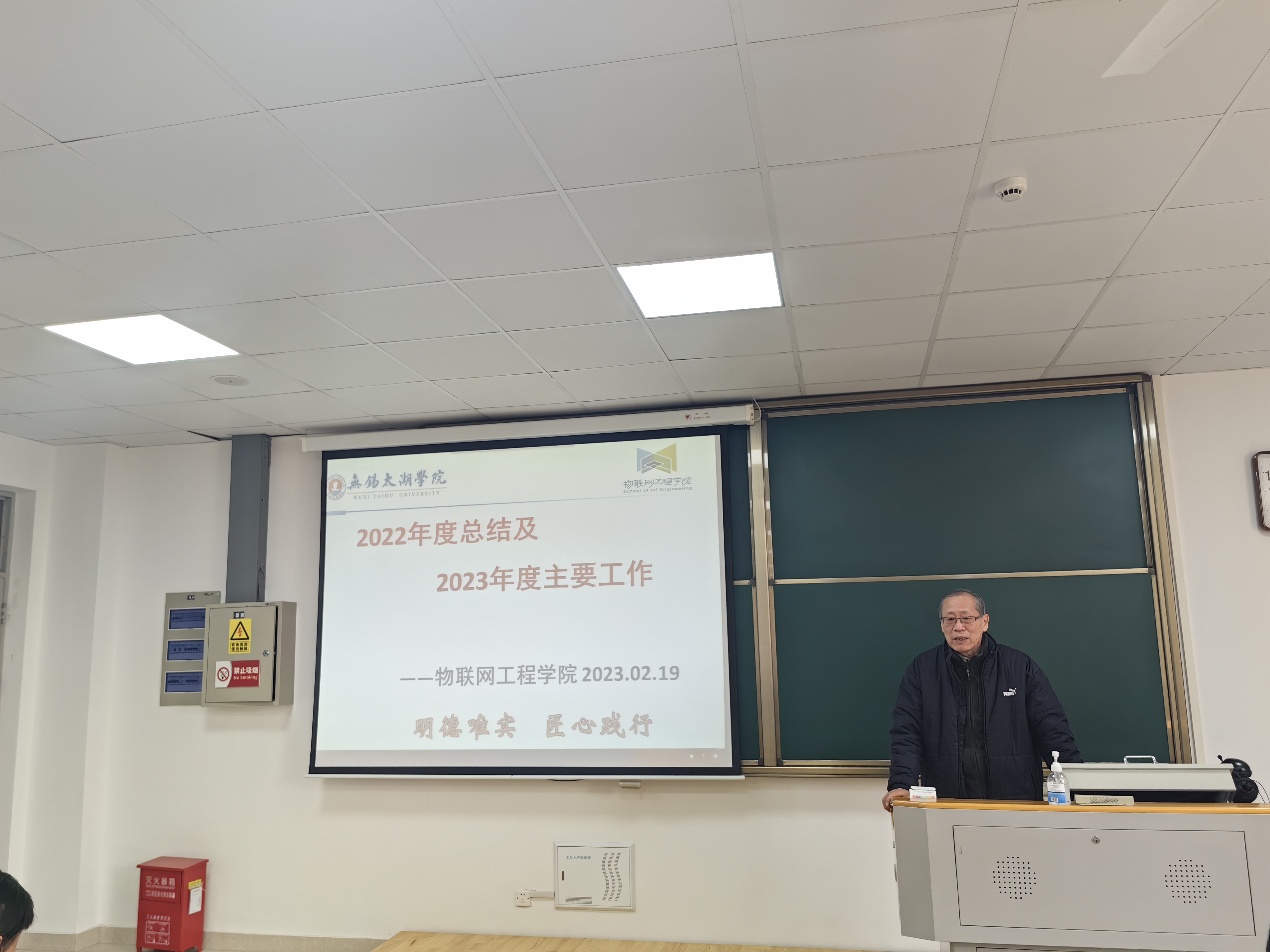 学院副院长方宁生对2022年度学院科研、产教融合、协同育人等方面进行了总结,对学院取得的突破性成绩和所作的贡献给予肯定和表扬,对于不足之处,强调应坚持问题导向,补齐短板弱项。新学期应加强引导青年教师对教学科研保持高度热情,对申报书质量提出具体要求,进一步推进物联网工程学院科研工作新篇章。