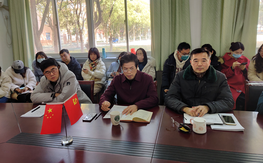 学院党总支副书记杨学圣针对23届毕业生的就业情况和学院的党建工作做了要求和说明,对教师和学工的链接和交流等作出了展望。