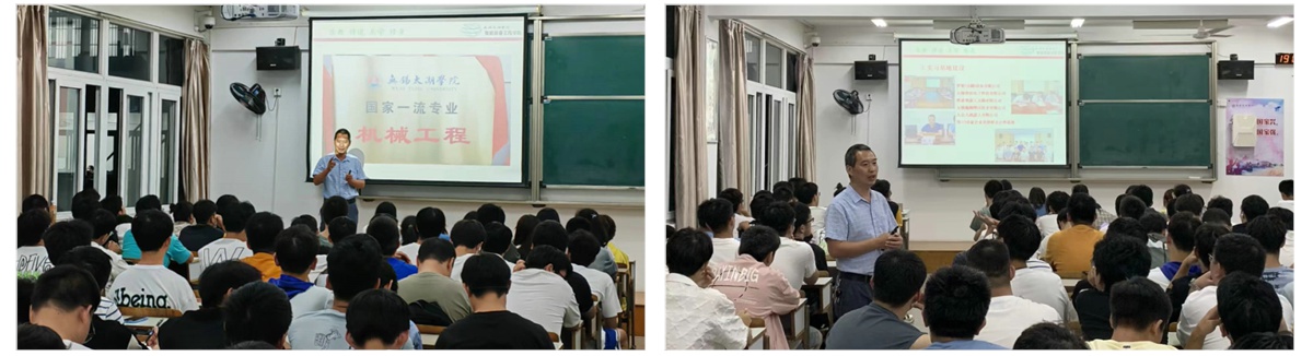 为了让大一新生迈好在大学里的第一步,写好人生中关键的一页,做好、做实人生职业发展规划,了解专业对社会的贡献,激发学生爱专业,爱学习,爱学校,9月29日19点,机械工程系主任杨汉嵩教授在7号楼215为大一新生做了“圆梦太湖,共创未来”主题新生专业指导报告。机械工程专业大一全体新生参加报告会。报告会从专业定位、培育目标、专业优势、专业特色、分类培养及学生优秀成果展示等6个方面做了具体而详细的剖析。杨汉嵩主任在报告中强调,学生在大学里获得知识的广度、深度不同,体现出来的人生价值,对社会的贡献,受人的尊敬程度以及个人未来的发展前景都有很大的差距,要“树理想、立好志、学好习、做好事”,成为对社会有贡献的人,不要在最好的时间浪费生命,要在太湖学院的大学四年时间里,珍惜每一分钟,做一个“学知识、练能力、健体魄”的优秀大学生。