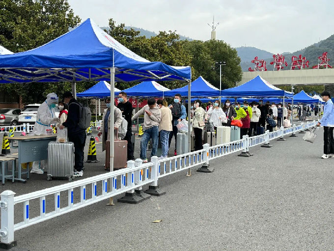 在南北区校门口,同学们自觉佩戴口罩做好个人防护后出示实时苏康码、通信行程卡、48小时内核酸检测报告,由工作人员核对并测量体温后进入校园。进入大门有工作人员为行李箱消毒,门口有校园小公交贴心地等候着不便搬运行李的同学,疫情防控下返校的一切都显得有条不紊。在疫情防控期间,遵守学校的防疫要求早已刻在每个同学的心里。