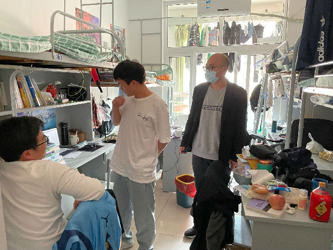 为了解智能建造学院21级在校学生线上学习和校园生活情况,3月30日下午,学院党总支副书记余波与21级辅导员戎婷竹老师前往21级男生宿舍进行走访。