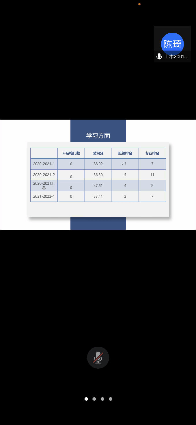 根据学生自愿报名,辅导员审核,共有14名候选人参加此次答辩。选手们借助共享屏幕围绕在校期间的综合表现进行了汇报,包括思想政治、学习工作、社会实践及志愿服务等方面,阐述了自己的成长、收获与感悟,展现了各自的风采。