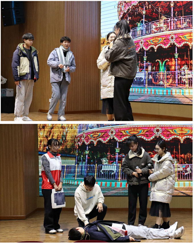 活动伊始,由主持人介绍本次比赛分为两部分,一是“救”在一刻情景剧,二是创伤救护模拟伤情。随着情景剧的落幕,选手们进入了比赛环节。在有限的比赛时间内,选手们都有条不紊的完成了技能展示,同时他们的精彩表现也得到了评委和观众的认可与赞扬。