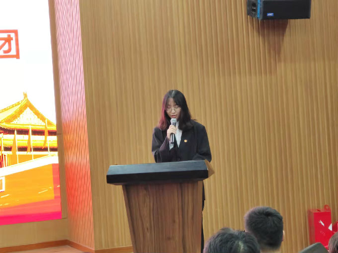 第一项议程,由校学生会主席李近月发言,预祝本次大会的顺利召开,并提出新一届智能建造团总支及学生分会委员需进一步锤炼自我,深化实践改革,更加充分的联系各位同学,执行好自己的职责。