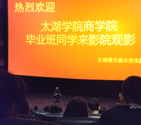 观影活动结束后,送别毕业生活动正式开始。在商学院院长徐立青的主持带领下,商学院毕业生代表唐语诗发言讲话。她首先和大家一同回忆了大学四年的生活,而后从四年的经历及心路历程出发,与大家分享了几点坚守,一坚守专注于冷静,二坚守内心并勇敢,三坚守责任并担当。最后她代表全体同学再次表达了对学院对母校的感激之情及美好祝愿。
