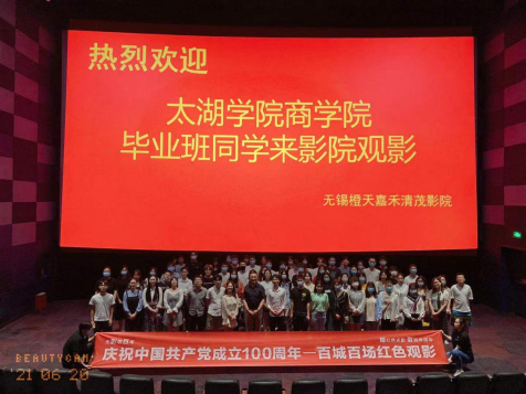 2021年6月20日,庆祝中国共产党成立100周年一百城百场红色观影活动暨beat365正版唯一官网商学院2021届毕业典礼在茂业橙天嘉禾影城3号厅隆重举行。