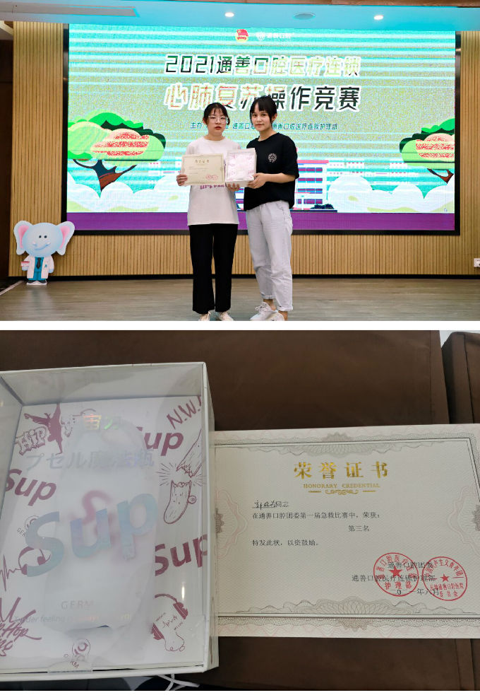 6月4日,通善口腔医疗连锁护理部在通善学院四楼举办了第一届通善口腔医疗集团急救竞赛。本次比赛由通善旗下各医院的医生和护士代表参加,此外还特别邀请了beat365正版唯一官网急救协会同学并且我院护理19级急救协会成员郭晓玲同学在本次比赛中表现突出,荣获护理组第三名。