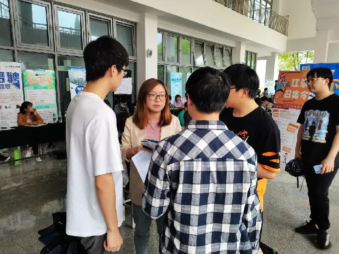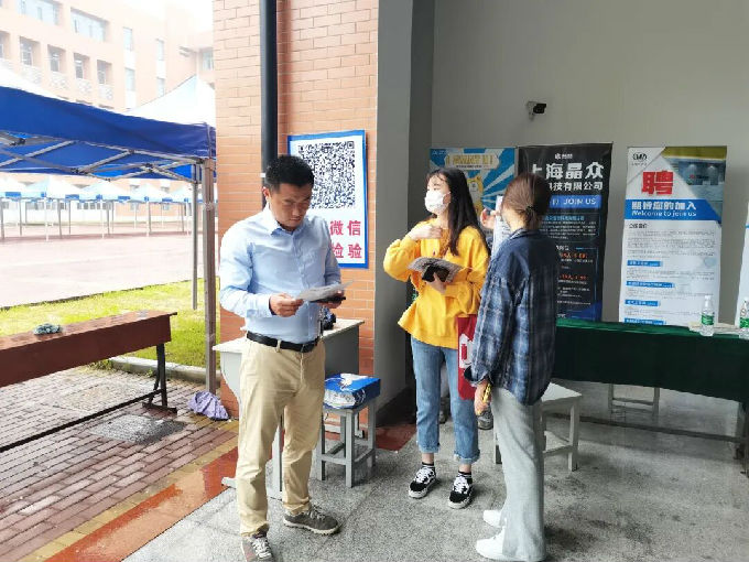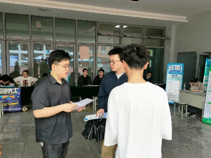 2021年5月12日上午9:00,物联网工程学院在商科楼一楼室外组织了毕业生专场招聘会。参加此次招聘会的有75家企业,2021届毕业生。物联网工程学院党总支副书记沈峰,团总支书记周期,以及辅导员,专业老师都亲临现场参观。