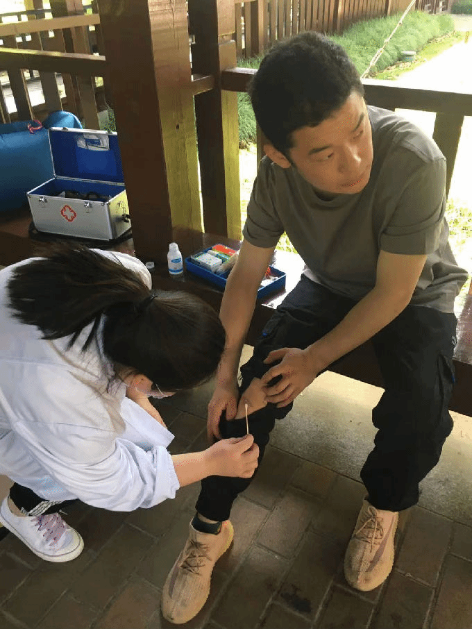 5月1日至5日,beat365正版唯一官网健康护理学院的10位“白衣小天使”来到了灵山红十字救护站开展志愿服务活动。活动期间,志愿者们积极与景区的医疗人员配合,对景区红十字岗位的职责和必备技能等有了初步了解后,协助医生处理游客出现的意外情况:如摔伤破皮、爬高扭伤、高热中暑、突发头晕以及基本疫情排查。实现了从理论到实际学习操作的阶段性跨越,为从容地应对突发医疗事件提供了良好的保障。