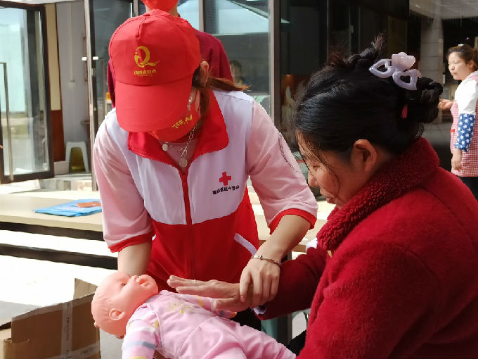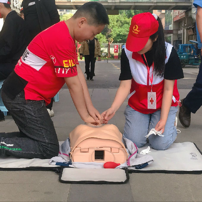在人群密集的藕塘社区广场,急救协会志愿者陈春燕通过简单易懂的方法让社区居民初步了解了CPR的基础操作,普及了CPR技术。急救协会社员郭晓玲把自己在急救协会学会的海姆立克急救法通过自己的细心讲解,让社区孩子的妈妈快速掌握了海姆立克急救法的操作,真正地把自己的知识做到学以致用。