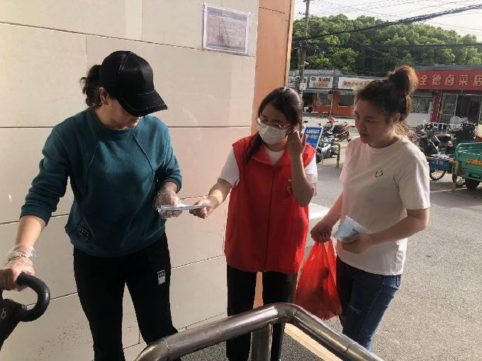 许多社区居民平时出门都是会随身携戴口罩,在到人流量多的公共场所时,取出口罩佩戴,也有一些到了贸易市场门口,但是忘记佩戴口罩的社区居民,学生党员们将带到梅园社区的口罩分给要进入贸易市场但没戴口罩的社区居民,活动进行的时候,有两位带着孩子的家长准备进入贸易市场,党支部成员提示她们戴口罩时,她们发现忘记携带了,但是很配合学生党员们维持的入场秩序 ,准备回去取口罩,当学生党员递给他们口罩时,她们十分感动,戴好口罩后进入贸易市场。