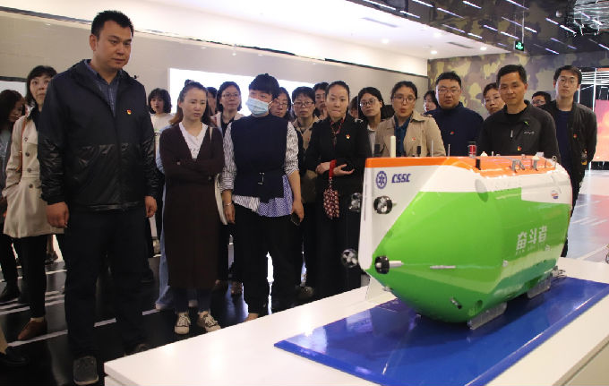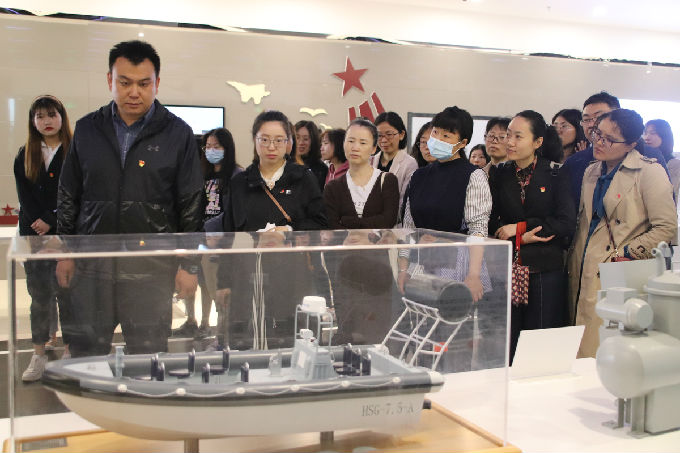 之后,全体党员跟随讲解人员分展厅进行了参观。展示展览中心的总体展示面积近1500平米,设有展示中心、保密接待室、军民融合项目路演发布大厅等,涵盖了无锡军民融合的最新成果。整个参观过程通过VR、AR、图片、文字、实物、模型、互动体验等综合方式展现了无锡军地协同企业的科技实力,更展现了以习近平同志为核心的党中央凝心聚力,以伟大工程激荡伟大梦想,推动科技进步开启新时代科技发展与军队建设的新篇章。蛟龙号载人潜水器模型、高海况巡逻艇模型、总线通讯型触摸屏、无锡国家超级计算中心、无锡集成电路设计中心等众多高科技产品及企业,不仅让党员同志们感受到了无锡产业集群高质量的发展特点,更体会到了我国强大的创新能力和科技实力,家乡自豪感与大国骄傲感油然而生!