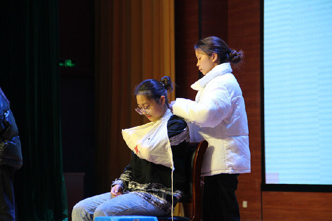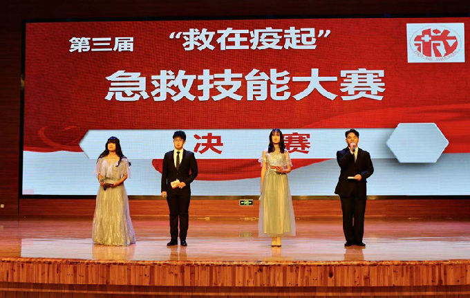 首先由胡宇书记致辞,胡书记强调举办急救技能大赛是为了普及急救技能,加强民众的急救能力,同时为检验我院学生应急救护技能的掌握情况,通过技能比赛来发现不足,找出差距,不断改进,着力提高全体学生急救技术水平。随后,周鸣鸣院长宣布比赛正式开始,一场精彩的情景剧“救在疫起”就此拉开序幕,演员们精湛的演技不仅体现了“急救”的主题,又强调了急救的重要性。