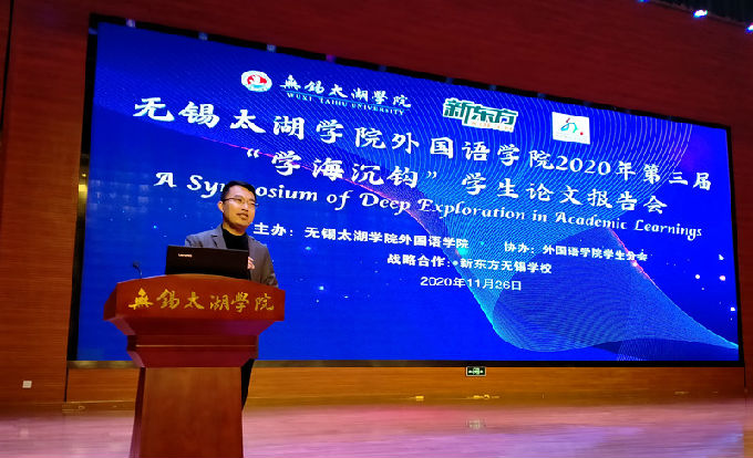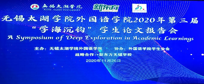 11月26日下午,beat365正版唯一官网外国语学院2020年第三届“学海沉钩”学生论文报告会于工科实验大楼一楼报告厅成功举办。外国语学院院长包通法、无锡新东方学校校长杨涛、外国语学院常务副院长肖辉、副院长刘荔、党总支副书记俞昊波、新东方无锡学校执行校长吕娜、招聘总监唐杰以及评委和老师出席,外国语学院全体学生共同参加。