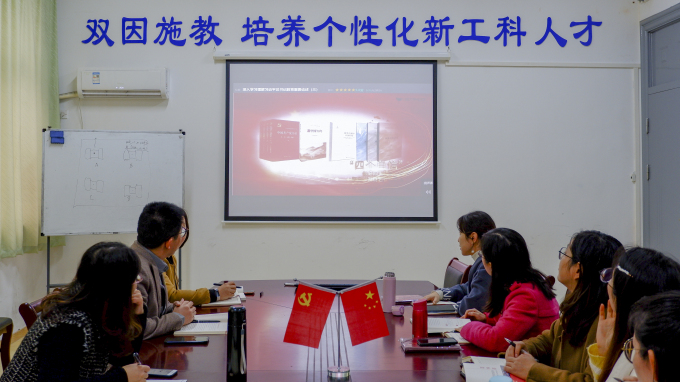 首先,按照前期“学史励行,争取双胜利”主题党日活动的本月学习计划安排,全体党员集中学习了《习近平总书记教育重要论述讲义》第四讲、第五讲、第六讲。由青年教师袁彬带领学习第四讲:我国教育最鲜亮的底色——坚持社会主义办学方向;党支部组织委员吴景春带领学习第五讲:教育发展要走自己的路