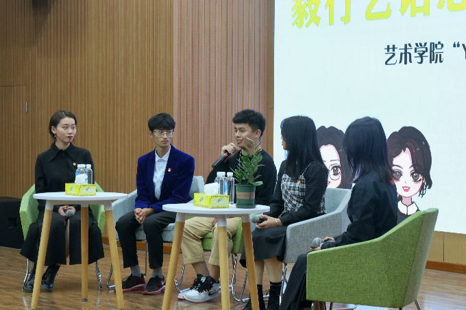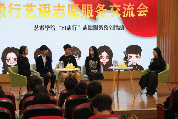 2020年11月19日,艺术学院“YI志行”志愿服务系列活动之“毅行艺语”志愿服务交流会在大学生活动中心顺利开展,活动邀请媒体1802班雷雅莉、环艺1903班贾凌志、媒体1802班皮翌涵、环艺1902班刘菲儿、视觉1803班朱天熹四位YI行志愿者参加。艺术学院学工秘书沈锴老师出席活动并致辞。艺术学院近两百余位同学参加活动。