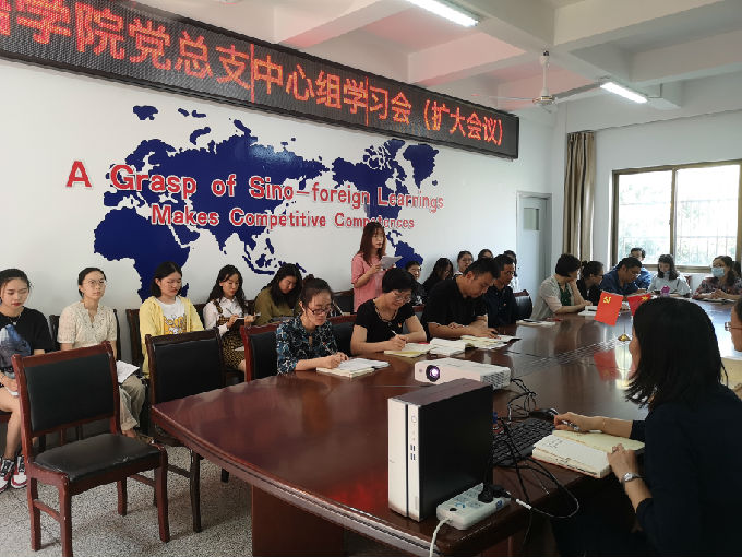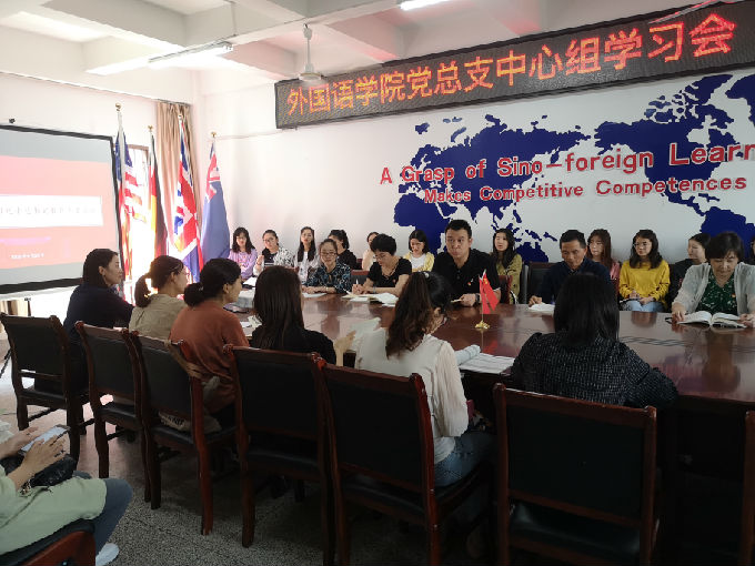 9月28日中午,外国语学院党总支在学院党校召开了党总支中心组学习会(扩大会议)。本次会议以“深入学习理解习近平总书记教育重要论述讲义”为主题,分为五个部分展开,会议由党总支副书记俞昊波同志主持,所有党员、入党积极分子和发展对象均参加了此次会议。