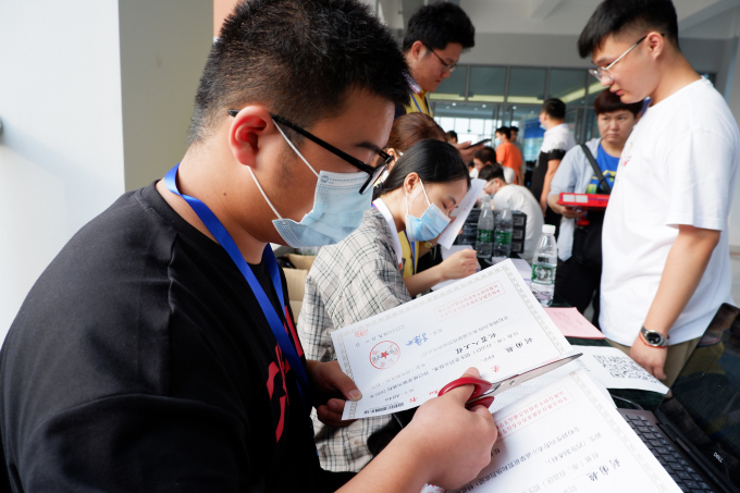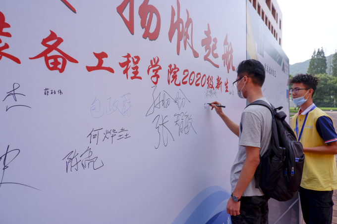 由身穿黄色上衣的志愿者引导至学院报到处后,依次排队完成报到手续。迎新工作人员热情细致地为每位新生办理手续,老师们也在现场为新生提供咨询指导,积极互动。为了欢迎2020级新生来到智能装备工程学院,学院组织了礼品赠送、签名墙签名等活动。尽心尽责的志愿者们帮助新生熟悉校园环境、领取床上用品、熟悉宿舍位置,积极主动地做好志愿服务工作。