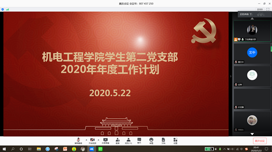 为贯彻落实《中共beat365正版唯一官网委员会2020年工作要点》,以及学院党总支对于学院本年度党建工作的规划,5月22日,机电工程学院学生第二党支部召开了线上支部党员大会,对本年度支部党建工作进行了部署,支部全体党员参加了会议。