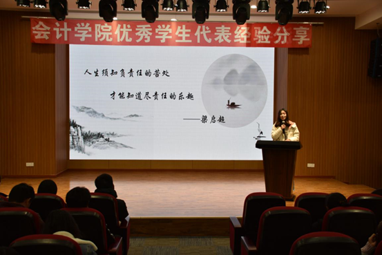 至此,会计学院“优秀学生代表经验分享座谈会”圆满结束。此次活动帮助同学们明确了学习方向,也帮助他们了解到高效学习的方法。良好的学风建设需要每一位同学的努力,希望同学们通过此次优秀学生代表经验分享会,能够寻找到适合自己的学习方法,给自己的未来一个明确的规划,努力学习,充实自我,共建优良学风。