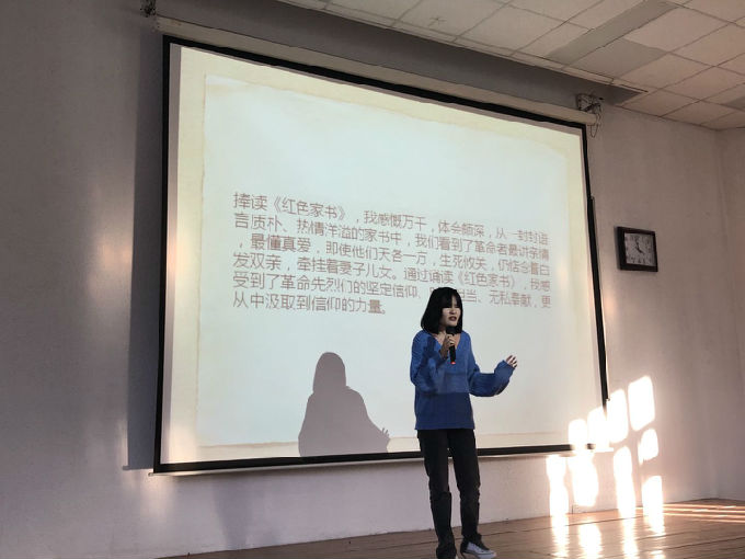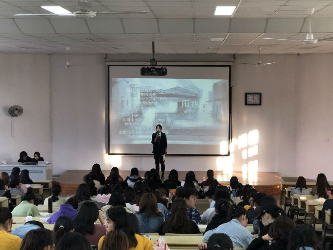 英语1801的谭硕同学朗诵的《如今之死,则重于泰山》,纸短情长,讲述人间大爱,让现场的同学们感受到革命先烈们坚定的信仰、时代的担当、无私奉献,更从中汲取到信仰的力量。商英1904张煜同学带来的《杜鹃花开了》表述了抗战9年的苦尽甘来,久旱逢甘雨,终等到“杜鹃花开”的激励人心的故事。商英1901班的关静静同学分享的是席慕容的《青春》,警示同学们“青春是用来奋斗的,而不是用来挥霍的”,青春是一首诗,如何描写是自己操笔,一旦写上就不可更改。