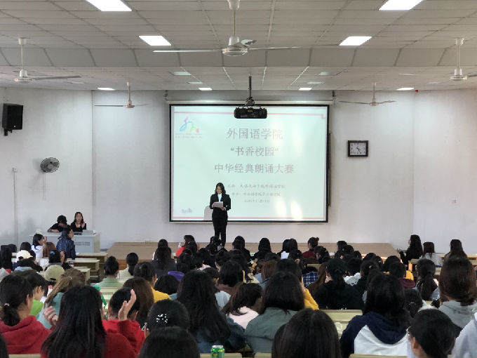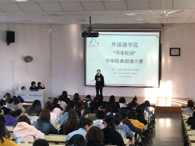 为进一步丰富校园文化生活,营造浓厚的书香校园氛围,传承国学文化经典,弘扬民族文化精髓,激发学生的读书和诵读热情,11月14日下午,外国语学院成功举办“书香校园”中华经典朗诵大赛。