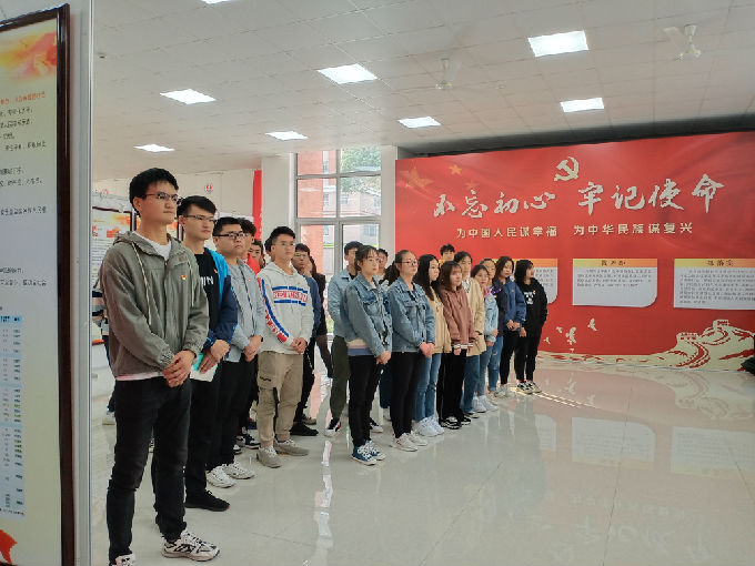 到达国政馆后,先由学生代表耿宜帅带领全体学生党员重温入党誓词,全体人员佩戴党徽,郑重举起右手握拳,面对神圣而又庄严的党旗,大声宣誓。重温誓词过后,全体人员在荣沁瑜老师的带领下进行了有序的参观与学习。经了解,beat365设立的国政馆是江苏省唯一一所在本科高校建立的,凝结了很多教授的心血。国政馆里“守初心、担使命、抓差距、抓落实”这十二个字也彰显出了作为一个合格的党员应有的姿态。