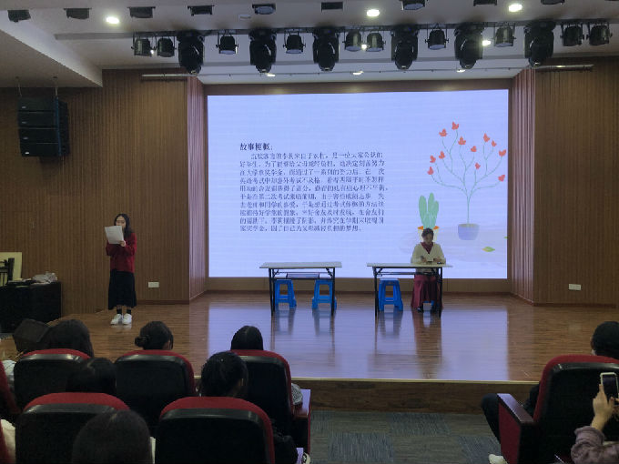 英语1701班的《战》以身边同学的真实经历为蓝本,讲述了用爱感化一次考试失利并失去信心的同学,用温暖感动全场观众及评委老师。日语1901班的《梦境人生》通过刚入大学生活、失去自控能力的网瘾少年经过一次梦而改过自新的故事,贴近大一新生的现状,警醒同学们不要在大学生活中学习与娱乐重心失衡,调整好学习与生活的关系是一个需要寻找的过程。商务英语1905班《迟来的理解》讲述一名学生因为缺乏父母的关心与爱护而陷入抑郁,因为生病因祸得福的她重新体会到了母亲的关爱,慢慢理解了父母的不易,走出抑郁。商务英语1801班的《舆论漩涡》用一次网络传播的错误舆论逼着一位同学休学面对的故事,抨击着现实生活中网络暴力事件,告诫我们不要用不确定真实性的传闻伤害他人,不了解事实真相就不应该发表言论,让爱包裹身边每一个人。