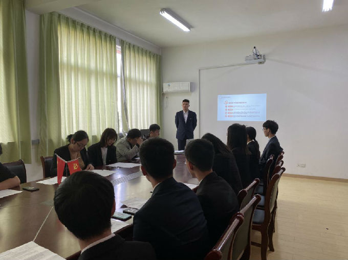 拟发展对象党员分别进行PPT汇报并进行现场抽签回答问题。在拟发展对象党员PPT汇报中:各拟发展对象就人党积极分子期间内的综合表现、学习成绩、参加支部及集体活动等进行简要汇报。