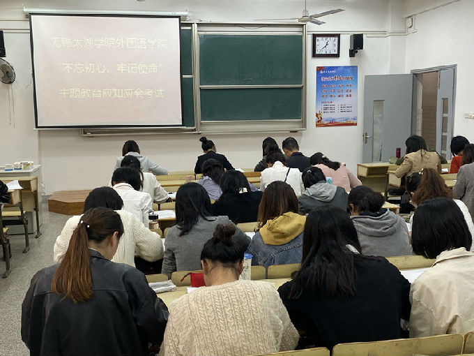 为全面贯彻习近平新时代中国特色社会主义思想和党的十九大精神,提高党员对“不忘初心、牢记使命”主题教育的再认识。10月18日中午,外国语学院组织开展了“不忘初心、牢记使命”主题教育应知应会知识测试。本次应知应会知识测试由外国语学院党总支副书记俞昊波主监,全体正式党员及预备党员共同参加。