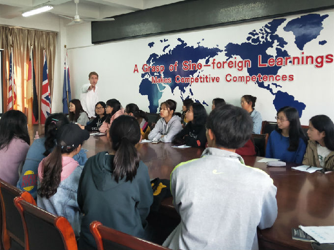 为了让同学们学以致用,Micheal将同学们分成小组进行活动,进行面试的模拟情景对话。同学们在情景对话中很好地运用了面试技巧,如微笑、握手、眼神交流等等。当然模拟情景和现实面试还是有区别的, Micheal分别对同学们的表现进行了点评。我们在活动期间加入了很多游戏,这些游戏采用积分制奖励原则,然后小组间进行互相比拼,这不仅能促进同学之间的相互合作,还能激发同学的参与热情。