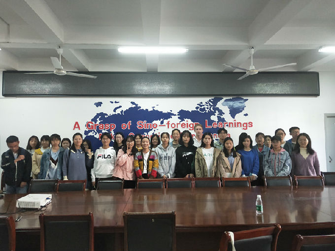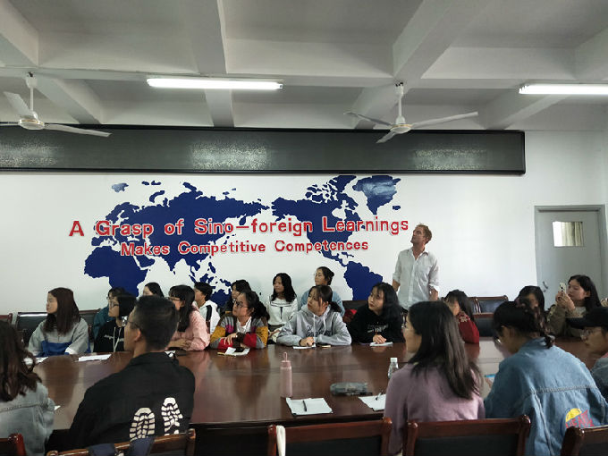 We are on the path(我们在路上)。活动伊始,外教Micheal先带领同学们玩了一个“英语词语接龙”的热身小游戏,将单词的尾字母作为下一个单词的首字母,且不能重复,并且对于两组的词性也做了要求,先完成20个单词的一组获胜。最终通过这个游戏,发现同学们在慌乱中特别容易拼写错误和搞错词性。“英语词语接龙”游戏使同学们在玩乐中学习。