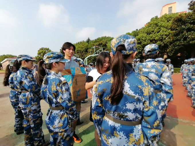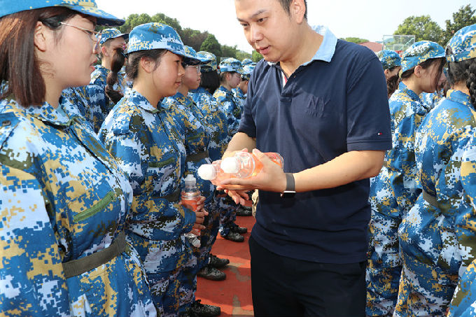 院领导们不仅带来了祝福与鼓励,还带来了补充能量的饮料。领导们将饮料依次的分发给辛苦的教官和可爱的新生们,礼轻情意重,小小的礼物是学院对军训新生最美好的期许与关爱。院领导们亲切地问候新生,询问是否习惯新环境,学习、生活上以及军训时期是否遇上什么问题,有问题要及时向老师反映。并且提醒新生们要注意休息、注意安全等。
