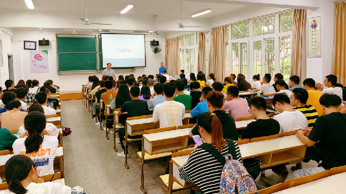 Global Academy(国际讲堂)是传统的English Corner(英语角)的全面提升,前八周的课程计划主要是围绕“Introduction Lesson、Sports、Travelling Overseas、University Life、Body Language、Interview Skills、Writing Emails、Business Meetings、Writing Resume”等主题开展,都是学生广泛需求的应用型主题。新学期的第一周,Global Academy在各个学院如火如荼的进行,有着丰富教学经验的外籍教师们以纯正的发音、幽默的语言、夸张的表情、充满童趣的肢体动作及灵活的教学方法,受到了老师们和学生们的认可和欢迎。围绕着Introduction的主题,外籍教师们创设了生动真实的情景,拉近与学生们之间的距离感,学生们不仅可以流利的介绍自己,而且可以灵活运用社交语言。外教们的开朗、天使般灿烂的微笑和惟妙惟肖的表演让学生们摆脱了起初的拘谨,课堂气氛变得活跃了,学生们的互动更积极主动了。聆听着纯正的英语口语,感受着英语的无限魅力,享受着应用英语的快乐和实用性,不仅开阔了学生们的视野,也增强了学生们学习英语的信心。随着Global Academy(国际讲堂)的常态化开展,相信学生们会从听音练耳的初体验到熟练自信的脱口而出,并在以后的课程中越来越适应外教的教学方式和节奏,变得更加自信。