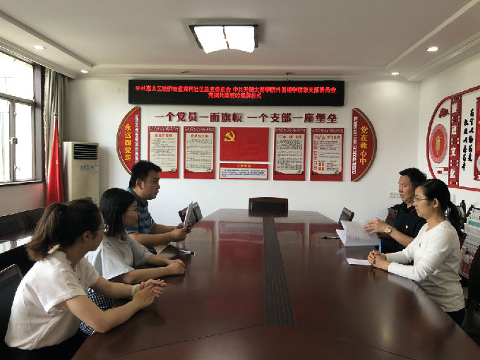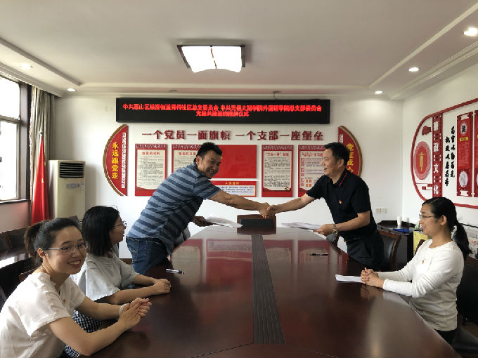 为推动党建工作创新和谐发展,按照党建工作规范化和标准化的新要求,有效整合社区和院校党建优势资源,6月14日,beat365正版唯一官网外国语学院党总支副书记俞昊波带领学生党支部书记任思悦、教师党支部党小组组长姬薇、团总支书记姚靓雯赴钱桥街道舜柯社区。舜柯社区党总支书记陈鹏、党总支副书记陆丹共同参加本次活动。